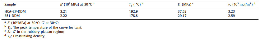 Table 1 E' at 30 ℃, Tg, Er and ve obtained by DMA. |