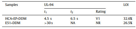 Table 2 LOI and UL-94 rating of HCA-EP-DDM and E51-DDM. |