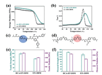 | Fig. 3. The curves of (a) storage modulus (G') and (b) tanδ versus temperature for HCA-EP-DDM and E51-DDM obtained by DMA. The structure of crosslinking networks for (c) HCA-EP-DDM and (d) E51-DDM. (e) Tensile strength and Young's modulus from tensile test and (f) flexural strength and modulus from flexural test of HCA-EP-DDM and E51-DDM. | |