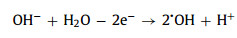 In an electrocatalytic reaction, the formation process of •O2− is relatively complex, mainly concluding two reactions. One reaction is •OH and H2O molecules are anodically adsorbed and oxidized to form •OH (Eq. 1), then the quenching reaction between •OH takes place to form •O2− (Eq. 2) [45]. The other is the reduction of O2 adsorbed on cathode to generate •O2− (Eq. 3) [44]. Therefore, the production of •O2− does not conform to the pseudo-first-order kinetics. Fig. 3c shows that •O2− was produced in all four electrocatalysis systems, and the yield efficiency fluctuated. Meanwhile, the 1O2 concentrations on the four anodes gradually decreased with reaction processing (Fig. 3d) due to the furfural alcohol was destroyed by the stronger oxidants than 1O2.