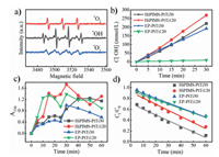 | Fig. 3. (a) Electron spin resonance detection results of ROS. The law of •OH (b), •O2− (c) and 1O2 (d) production on four anodes. | |