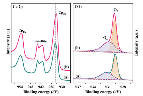 | Fig. 2. Cu 2p and O 1s XPS spectra of CuO (a) and 3 at% Mo doped CuO (b) catalysts. | |
