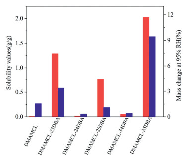 | Fig. 6. Solubility profile and mass change at 95% RH of DMAMCL and its isostructural salts. | |