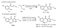 | Scheme 4. Gram-scale reaction and transformations. | |