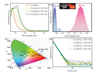 | Fig. 2. (a) UV–vis absorption spectra of Cs2ZnCl4 and Cs2ZnCl4: Sn. (b) Room-temperature PL and PLE spectra of Cs2ZnCl4: Sn. (c) CIE chromaticity diagram of Cs2ZnCl4: Sn. (d) Room-temperature PL decay curves of Cs2ZnCl4: Sn. | |