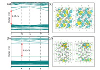 | Fig. 3. Calculated band structure (a) and charge densities (VBM (left) and CBM (right)) (b) of Cs2ZnCl4. Calculated band structure (c) and charge densities (VBM (left) and CBM (right)) (d) of Cs2ZnCl4: Sn. The red circle denotes the doped Sn2+ ion. | |