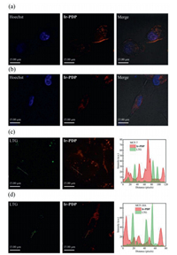 | Fig. 3. Confocal laser scanning microscopy imaging of living MCF-7 and MCF-10A cells incubated with Ir-PDP. (a, b) Co-localization of Ir-PDP (20 µmol/L, 24 h, red) with Hoechst 33342 (10 µg/mL, 20 min, blue) in (a) MCF-7 cells and (b) MCF-10A cells. (c, d) Co-localization of Ir-PDP (20 µmol/L, 24 h, red) with LysoTracker Green (50 nmol/L, 20 min, green) in (c) MCF-7 cells and (d) MCF-10A cells. Ir-PDP: λex = 405 nm; λem = 600 ± 20 nm. Hoechst 33342: λex = 405 nm; λem = 447 ± 20 nm. LysoTracker Green: λex = 488 nm; λem = 525 ± 20 nm. | |