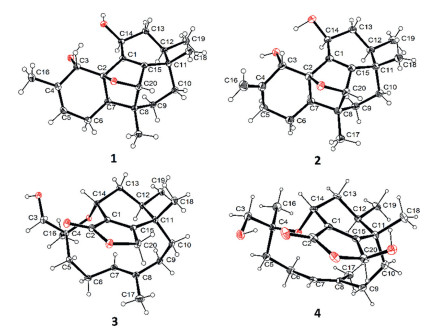 | Fig. 2. Ortep drawing of compounds 1‒4. | |