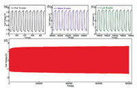The long-term stability of the AC relay electrode under constant current (200 mA, 100 s for 1 cycle) is investigated. As shown in Figs. 3a-c, the first 10 cycle, middle 10 cycles and the last 10 cycles are enlarged. No obvious performance decay is observed, which confirms the high stability of the relay electrode. At a cell current of 200 mA, the two-step water splitting process can be reversibly cycled for 8000 rounds in 223 h without noticeable decay (Fig. 3d).