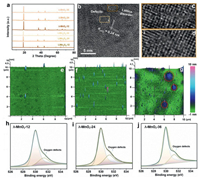 LiMn2O4 possesses a spinel structure in which Mn3+ and Mn4+ occupy the octahedral B sites and Li+ locates in the tetrahedral A sites (Fig. S1a in Supporting information). The morphology of the obtained LiMn2O4 is shown in Fig. S1b (Supporting information). The λ-MnO2-T is obtained after the Li+ removal from LiMn2O4 and the crystal structure is shown in Fig. S2a (Supporting information). X-ray diffraction (XRD) patterns (Fig. 1a) reveal that there is a significant difference in lattice parameters between LiMn2O4 (JCPDS No. 35-0782) and λ-MnO2 (JCPDS No. 42-1169). Compared with LiMn2O4, a remarkably lattice strain appears in λ-MnO2 due to the increase of oxidation state of Mn and pulverization of single crystals [28,29]. Meanwhile, all the λ-MnO2 possess rough surfaces with micro-cracks morphology, as shown in Figs. S2b-d (Supporting information). Structural features and surface topographies are characterized by HR-TEM (high resolution transmission electron microscopy) and AFM (atomic force microscopy). Taking the λ-MnO2-24 as an example (Figs. 1b-d), the lattice distance of 0.24 nm corresponds to the (311) plane of λ-MnO2. And there are many ambiguous atomic columns and disordered lattice fringes could be observed in the crystal planes, which are caused by rich atom defects. Furthermore, the AFM images with 10 µm × 10 µm area scan show totally different surface morphologies among them (Figs. 1e-g). Obviously, λ-MnO2-12 shows a quite flat and homogeneous surface with several protrusion spots, and λ-MnO2-24 delivers a much more uneven surface with ups and downs. Unfortunately, λ-MnO2-36 displays an almost damaged structure as marked in these red circles due to the excessively long high-temperature reaction time.