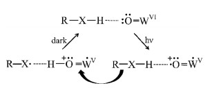 Considering above-mentioned abundant hydrogen bonding in solid state structures of 1–3, it can be inferred that the photochromic mechanism of 1–3 relies on Yamase's model for the charge transfer (CT) aspect of the photochromic mechanism [33, 34]. Therefore, similar to the mechanism proposed by Yamase's group, the electron transfer occurs between the terminal oxygen atom of the POM cluster and its connecting WVI atom, induced by the multiple intra-molecular O−H⋯O and N−H⋯O hydrogen bonding pathway between the DL-serine ligand and POM components under high-power irradiation (Scheme 1).