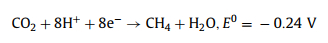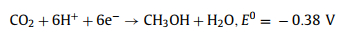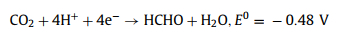 5.4. CO2 reductionGlobal warming is increasing year by year, which is caused by the large amount of CO2 gas emitted from the burning of fossil fuels [159,160]. In addition to decreasing the fossil fuel consumption, the development of clean, efficient and renewable green technologies is urgently needed to convert excess CO2 into valuable products [161]. Semiconductor photocatalytic CO2 reduction provides a strategy to kill two birds with one stone, which solves the problems of greenhouse effect and energy crisis at the same time. In this system, the photocatalysts convert solar energy into chemical energy, that is, reducing CO2 to valuable compounds, such as carbon monoxide, methane, methanol, and ethanol [162,163]. The CO2 reduction capability is related to the energy band position of photocatalysts [164]. The bottom of the conduction band of photocatalysts must be more negative than the reduction potential of various reduction products of CO2, which are listed in Eqs. 26–30.