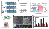| Fig. 7. (a) Crystal structure of MXene. (b) Schematic representation of single 2D Ti3C2 sheets and Ag3PO4/Ti3C2 synthesis. (c) The mechanism of photodegradation and anti-photocorrosion of Ag3PO4/Ti3C2 Schottky catalyst. Reprinted with permission [66]. Copyright 2018, Elsevier. (d) Schematic illustration of the synthetic of 2D/2D heterojunction. (e) TEM image of ultrathin Ti3C2/Bi2WO6 nanosheets. (f) Photocatalytic activity of TB0 to TB5. Reprinted with permission [67]. Copyright 2018, Wiley-VCH. | |