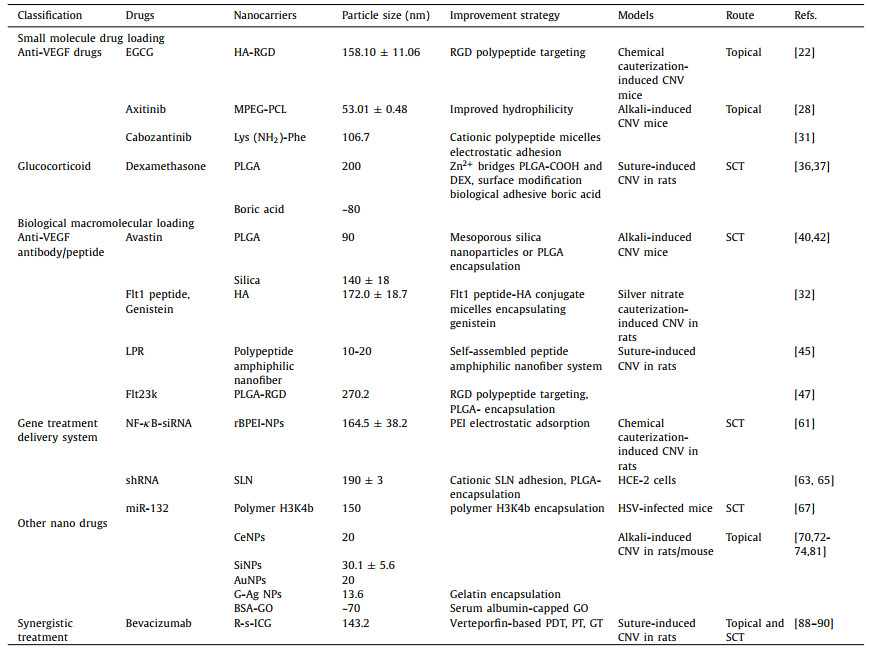 Table 1 Nanocarriers to deliver anti CNV agents. |