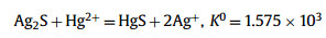 The above results elucidate that the colorimetric detection mechanism depends on the fact that Hg2+ can react with Ag2S to constitute HgS, thereby varying the components and morphology of the nanomaterials and eliciting obvious spectral and color changes. The reaction between Au/Ag2S dimeric NPs and Hg2+ is shown below: