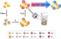 Another crucial factor is the amount of I2 because it impacts on the conversion efficiency of Ag to AgI. Au/AgI NPs acquired by different amounts of I2 (0, 200, 500 and 700 µL) were used to form Au/Ag2S NPs for Hg2+ detection. Figs. S3a and b (Supporting information) demonstrates that insufficient I2 caused a narrow detection range of Hg2+ for the final synthetic Au/Ag2S NPs. This is probable due to the fact that insufficient I2 cannot completely oxidize Ag shell and the nanoparticles were still core-shell structure, which produced deficient Ag2S shell for Hg2+ sensing. Excessive I2 produced thick AgI shell, which had a strong shielding effect and reduced the synergistic effect, and compromised the sensitivity (Fig. S3d in Supporting information). Therefore, as displayed in Fig. S3c (Supporting information), we selected 500 µL I2 to obtain the nanoprobes.