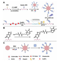 | Fig. 1. (A) Schematic illustration of fluorescence detection of 5fC by 5fC-PTIAS assay. (B) Molecular mechanism for the biotinylation of 5fC-DNA using ARP. (C) Preparation of functionalized MBs with a DNA probe and streptavidin. | |