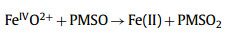 Fig. 1 shows that PDS alone could not remove PMSO, which excluded the possibility that PDS directly oxidized PMSO to produce PMSO2. Upon adding Fe(Ⅱ), rapid removal of PMSO (48.8%) was observed while producing 39.5 µmol/L PMSO2. The calculated η(PMSO2) was 80.8% in Fe(Ⅱ)/PDS system. As reported in a previous study [12], PMSO2 was the individualized product of PMSO oxidization by FeⅣO2+ in Fe(Ⅱ)/PDS system, indicating that the FeⅣO2+ was the main ROS for PMSO elimination in Fe(Ⅱ)/PDS system. Notably, the removal of PMSO in our study was unsatisfactory (less than 50%). Fig. 2a reveals that only about 0.2 mmol/L PDS was consumed after 30 min, while Fe(Ⅱ) was wholly consumed, indicating that the further removal of PMSO was limited due to the lack of Fe(Ⅱ). Similar results [12-15] were found in previous studies where the PMSO removal was also undesirable and PDS consumption was incomplete (Table S1 in Supporting information). However, according to Eq. 2 [12], PMSO could reduce FeⅣO2+ to Fe(Ⅱ), which should react with PDS and produce FeⅣO2+ again (Scheme S1 in Supporting information). This cycle should lead to a more efficient elimination of PMSO in the Fe(Ⅱ)/PDS system if PDS were sufficient. This result could be assigned to the fact that Fe(Ⅱ) regenerated (Eq. 2) was re-oxidized by FeⅣO2+ or free radicals (Eqs. 3–5), resulting in a lack of Fe(Ⅱ) in the Fe(Ⅱ)/PDS system and thus inhibited the PMSO removal.