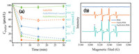 | Fig. 2. Effect of HA on the Fe(Ⅱ) concentration (full line) and PDS (dotted line) in Fe(Ⅱ)/PDS system (a), EPR profiles of PDS, Fe(Ⅱ)/PDS and Fe(Ⅱ)/HA/PDS system (b). Experimental condition: Initial pH 3.0, [PDS] = 0.5 mmol/L, [PMSO] = 0.1 mmol/L, [Fe(Ⅱ)] = 0.1 mmol/L, [HA] = 2.0 mmol/L, [DMPO] = 0.1 mmol/L, (♦ represents •OH adduct and ♥ represents SO4•− adduct). | |