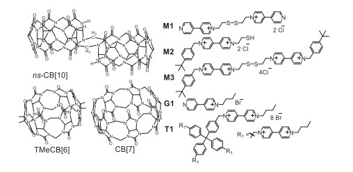 | Fig. 1. Structures of M1, M2, M3, G1, T1, TMeCB[6], CB[7] and ns-CB[10]. | |