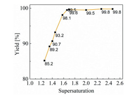 | Fig. 8. The yields at different supersaturation for dolutegravir sodium of continuous preparation in liquid-gas heterogeneous microreactor. | |