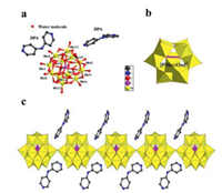 | Fig. 1. (a) Fundamental unit of DPA·PMo12. (b) Structure of [PMo12O40]3− cluster. (c) Structure of one-dimensional chain-like structure of DPA·PMo12. | |