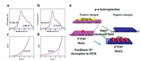 | Fig. 3. Binding energy cutoff region of UPS spectra for (a) MoS2, (b) MoO3. Tauc plots of (c) MoS2, (d) MoO3. (e) Schematic diagram of p-n heterojunction. | |