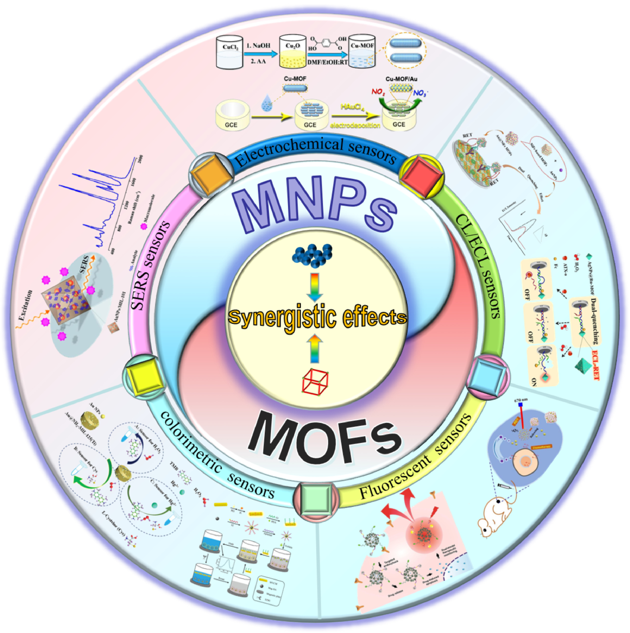 To summarize, the synergistic interaction of MNP and MOF results in increased CL/ECL intensity and enhanced CL/ECL sensing efficiency in MNPs/MOFs composites.