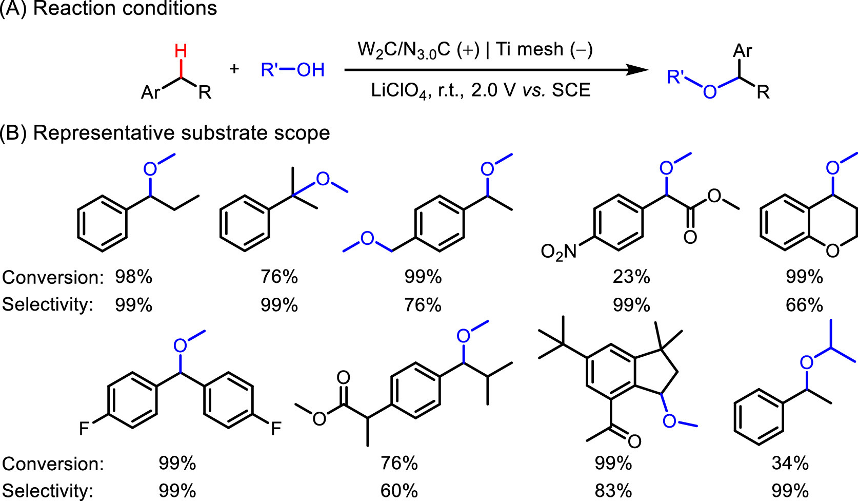 | Fig. 18. W2C/N3.0C modified electrode for alkoxylation of benzylic C–H bonds. | |