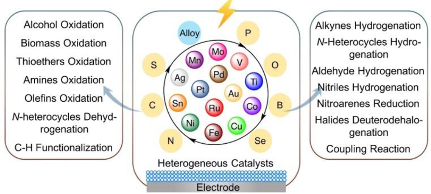 | Fig. 2. The representation of heterogeneous catalysts modified electrodes for organic electrosynthesis. | |