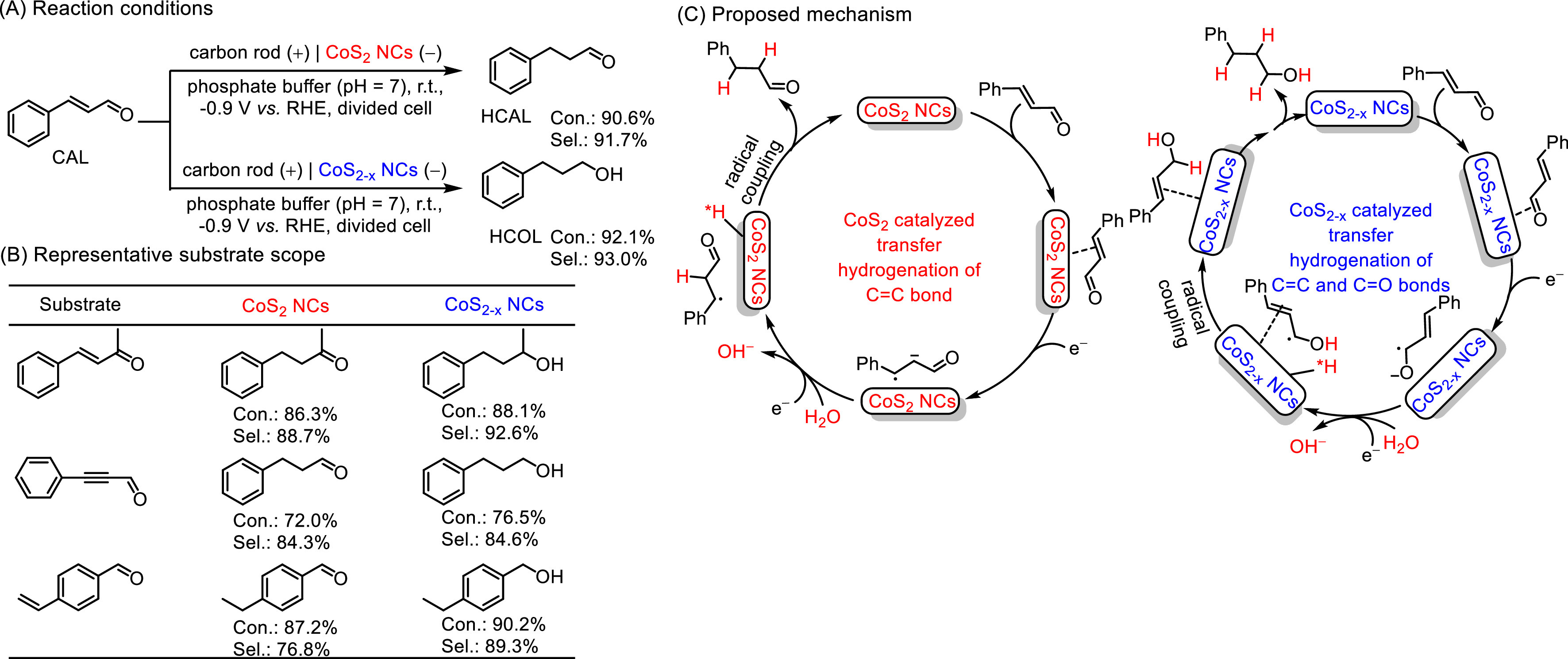 | Fig. 25. CoS2 and CoS2-x NCs modified electrodes for selective electrocatalytic hydrogenation of α, β-unsaturated aldehydes. | |