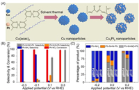 | Fig. 29. (A) Schematic illustration of the synthetic process of CuxPty nanoparticles. (B) The conversion and product selectivity of Ph-NO2 reduction over Cu3Pt/C catalyst at different applied potentials. (C) The product selectivity of Ph-NO2 reduction over Cu3Pt/C catalyst at different pH solutions and different applied potential. Reproduced with permission [144]. Copyright 2021, Elsevier. | |