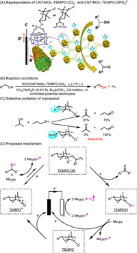 | Fig. 4. CNT/MOL-TEMPO modified electrode for electrocatalytic oxidation of alcohols. Reproduced with permission [19]. Copyright 2018, American Chemical Society. | |