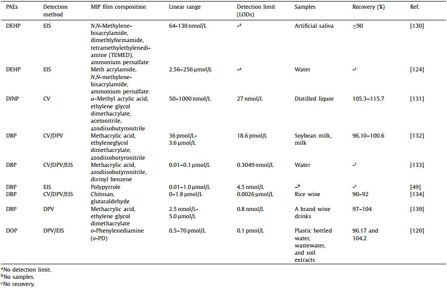 Table 2 MIP used for electrochemical detection of phthalate esters. |
