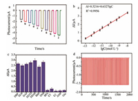 | Fig. 6. (a) Photocurrent responses of the PEC aptasensor incubated with different concentrations of DBP (from a to j: 0.1 pmol/L-10.0 nmol/L). (b) Calibration curve of photocurrent response changes of the PEC aptasensor (ΔI) to different concentrations of DBP. (c) Selectivity of the PEC aptasensor incubated with 1.0 nmol/L different PAEs and 10.0 nmol/L different interferences. (d) Stability of the PEC aptasensor under continuous detection. Error bars were derived from the standard deviations of three measurements. Reproduced with permission [162]. Copyright 2022, American Chemical Society. | |