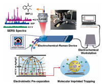 | Fig. 8. Schematic lllustration of electro kinetic pre-separation and molecularly imprinted trapping of charged PAEs on a portable interface for selective SERS recognition. Reproduced with permission [222]. Copyright 2020, American Chemical Society. | |