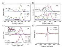 | Fig. 3. High resolution (a) Ti 2p, (b) O 1s and (c) C 1s XPS spectra of OV-Ti2SC and A-Ti2SC. (d) EPR spectra of OV-Ti2SC and A-Ti2SC. | |