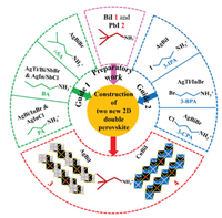 However, up to now, 2D layered HDPs (A4BIBⅢX8) are still extremely rare, especially in series AgBiI and CuBiI with narrow band gaps and excellent carrier transport properties [34-37], resulting from appearance of more stable multiple phases caused by improper templates and the formation energy deficit brought by size mismatching. So looking up and summarizing predecessors' researches are very necessary and significant. In Scheme 1, we compared three ammonium cations including PA (propan-1-aminium) [38], BA (butan-1-aminium) [33, 39] and i-SA (3-methylbutan-1-aminium) [40], whose flexibility is the key to inserting double perovskite frameworks, just like flexible AE2T [41], but this also limits the connective octahedrons that cannot be too large to ensure the matching of the structure, otherwise there will be multiple phases. As another reported solution to construct a new 2D HDPs, researches embarked on introduction of halogen in cations including 3-CPA (3-chloropropan-1-aminium) [42], 3-BPA (3-bromopropan-1-aminium) [39] and 3-IPA (3-iodopropan-1-aminium) [37], with the change of halogens, Br-based octahedrons cannot tolerate the entry of larger ammonium ions, and finally I-based octahedrons can be used to complete the construction of the structure.