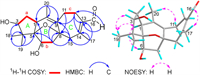 | Fig. 2. Key 2D NMR correlations of 1. | |