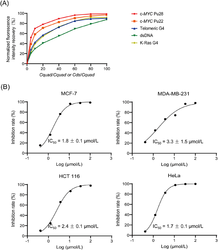 | Fig. 5. G4 binding selectivity (A) and in vitro antitumor potency (B) of compound 15g. At least two independent experiments were done for each condition. | |