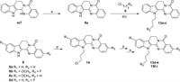 Evodiamine (7a) and rutaecarpine (8a) (Fig. 1B) are two main bioactive indolopyridoquinazoline alkaloids isolated from Evodia rutaecarpa, and have diverse biological activities [27-29]. Several evodiamine derivatives (e.g., compounds 7b, 7c and 7d, Fig. 1B) were identified as Top1/2 dual inhibitors with potent antitumor activities by our group [30-32]. The indolopyridoquinazoline skeleton bearing a large planar heteroaromatic core shares structural similarity with reported G4 ligands (Fig. 1C). Thus, we envisioned that G4 and Top1/2 ligands could be designed by incorporating the alkyl amine-containing moiety into the indolopyridoquinazoline scaffold. As a conceptual validation study, herein the first G4 and Top1/2 triple ligands were designed and assayed (Fig. 1D).
