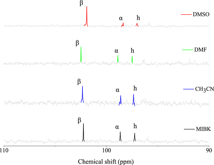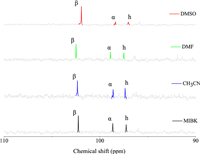 | Fig. 2. 13C NMR spectra of the ERO in DMSO, DMF, CH3CN and MIBK. DMSO-d6 was used as the field-locking reagent. | |