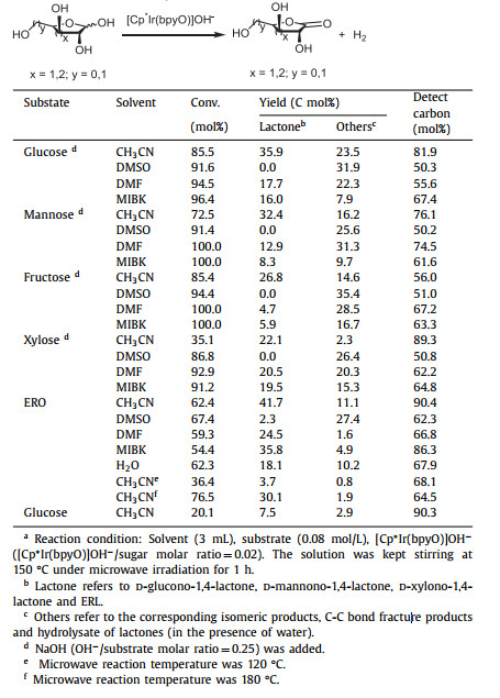 Table 1 The conversion of C4-C6 sugars toward its lactones.a |