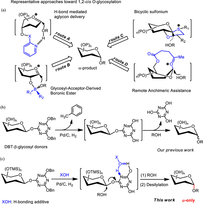 To meet the needs of stereo-specific synthesis, various strategies were developed to offer a neighboring-group effect or supramolecular interaction, generating the α- and β-specific products [4-6]. Although the 1, 2-cis-α linkage is favored by the anomeric effect, the stereospecific synthesis of 1, 2-cis-α-product is still challenging for chemists. In 1981, the first use of β-glucosyl fluoride as a glycosyl donor was reported for the synthesis of α-glucosides with a promoter generated from stannous chloride (SnCl2) and silver perchlorate (AgClO4) [7]. The poorer leaving group derived from a strong C-F bond leads to the selective formation of α-products. Currently, many advanced and representative protocols including H-bond mediated aglycon delivery (HAD) strategy (Fig. 1a, route A) [8], boronic ester mediated 1, 2-cis-α-glycosylation (Fig. 1a, route B) [9-12], neighboring auxiliary method (Fig. 1a, route C) [13], and remote assistance effect (Fig. 1a, route D) via O-Bz [14], 6-O-Lev protecting group [15, 16], or 1, 6-di-O-N-phenyltrifluoeoacetimidoyl glycosyl donors [17], have been reported to overcome this issue.