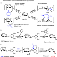 Although the excellent stereoselectivity could be obtained through these advanced strategies, the preparation of special glycosyl donors with designed protecting groups also brings seriously synthetic hurdles, especially when the direct glycosyl coupling reaction of an oligosaccharide moiety is required in the total synthesis of natural products. Thus, simple and stereocontrolled methods for the construction of completely 1, 2-cis-α-glycosidic linkages are still welcome.