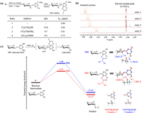 | Fig. 2. Reaction mechanism studies. (a) Relations between the chemical shifts of the anomeric protons on amine-stabilized DHT-glycosyl intermediates and varied additives; (b) Stacked NMR spectra for the mixture of amine-stabilized DHT-glycosyl intermediates and different additives; (c) DFT calculation results about this reaction: reaction intermediate is generated via hydrogenolytic debenzylation. Then, HFIP and 2-prpanol were added to form the corresponding transition structures TS1 and TS2, respectively. The simulated details and original energy for DFT calculation were listed in Supporting information. | |
