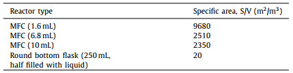 Table 2 Comparison of the surface area per reactor volume between the batch and MFCs reactor. |
