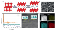 | Fig. 1. (a) Schematic illustration of the preparation process of PMO. (b) The typical SEM image of PMO. (c) XRD patterns and (d) HRTEM images of PMO and NMO. (e) Elemental mapping analysis of PMO. | |
