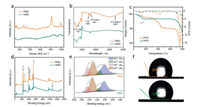 The X-ray diffraction patterns of the as-synthesized samples were recorded by a Rigaku MiniFlex600 X-ray diffractometer (XRD) with Cu-Kα radiation. The morphologies and structures of the samples were characterized by a field-emission gun scanning electron microscope (SEM, Hitach-SU8010) and a transmission electron microscopy (TEM, FEL-Talos F200S). X-ray photoelectron spectroscopy (XPS, Thermo Fisher-Escalab 250Xi) measurements were performed to study the chemical natures of the as-synthesized samples. The Raman measurement was operated through a confocal Raman spectrometer (LabRAM HR800, Horiba Jobin Yvon) with a 532 nm laser wavenumber. Infrared spectroscopy of samples were characterized by an FT-IR spectrometer (Nicolet iS5, Thermo Scientific). Thermogravimetric analysis (TGA) was performed using a Netzsch STA 449C thermal analyzer with a temperature range of 25–800 ℃ at a heating rate of 10 ℃/min. Contact angle measurements were performed on the OCA 100 (Dataphysics) contact angle meter.