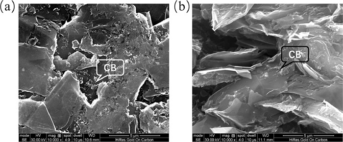 Due to the high specific surface area and polar surface of conductive carbon black, carbon nanotubes and cut carbon fibers, ultrasonic treatment, mechanical agitation and mechanical crushing were used for different auxiliary fillers in this paper. When carbon black (CB) was used as the auxiliary filler, it was dispersed separately into the resin solution firstly, and then treated by mechanical stirring at 500 r/min speed for 10 min after 30 min of ultrasonic treatment. The flake graphite powder was then added. When carbon nanotubes were used as the auxiliary filler, they were first added into the resin solution after ultrasonic dissolution for 30 min, so that the dispersed carbon nanotubes were dispersed into a relatively thick slurry. When the short-cut carbon fiber was used as the auxiliary filler, the short-cut carbon fiber bundle was first crushed in a mechanical grinder for 2 min to make it untangled and bonded.